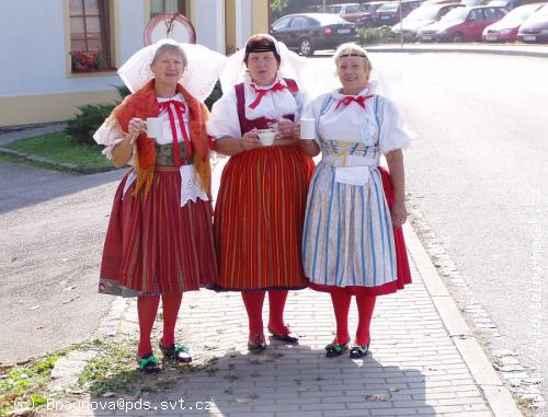 národní kroje krajové jsou dnes materiálově nedostupné, řídí tetičky i
